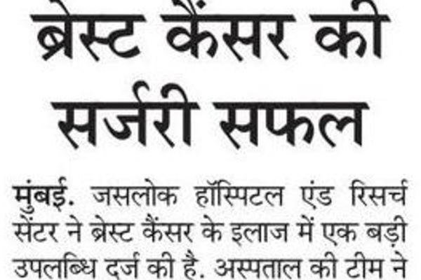 Breast Cancer: ब्रेस्ट कॅन्सर रुग्णांसाठी दिलासा! जसलोक हॉस्पिटलमध्ये 'व्रणरहित' शस्त्रक्रिया यशस्वी